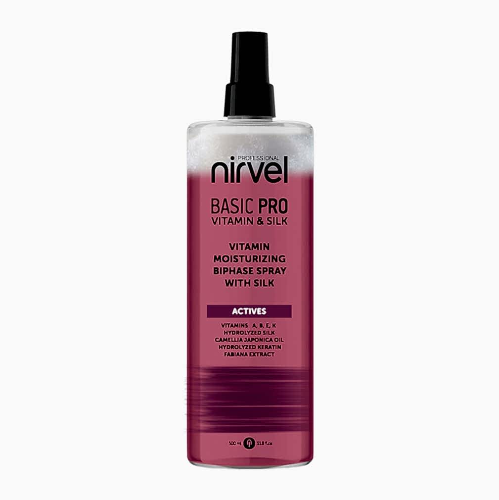 Витаминный увлажняющий двухфазный спрей-кондиционер с шелком Nirvel BasicPro Vitamin Biphase. Витаминный коктейль, входящий в состав камелии японской и экстрактов тысячелистника и фабианы активно увлажняет, облегчает расчесывание, снимает статику, придавая волосам эластичность, мягкость и шелковистость. Гидролизованные шелк и кератин регенерируют поврежденные участки волос, выравнивают секущиеся кончики, Pin-Up волосам жизненную силу. Специальные фильтры защищают от UV-излучения.